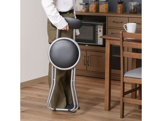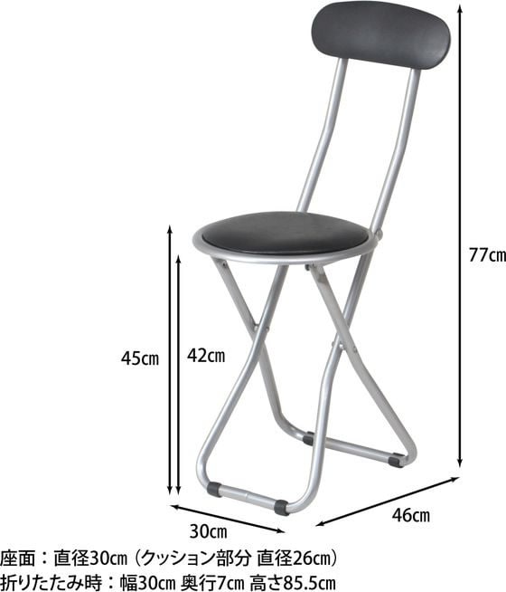 ●詳細:座面高/450mm、耐荷重(座面)/80kg、座面直径/300mm、座面クッション直径/260mm、折りたたみサイズ/300×70×855mm