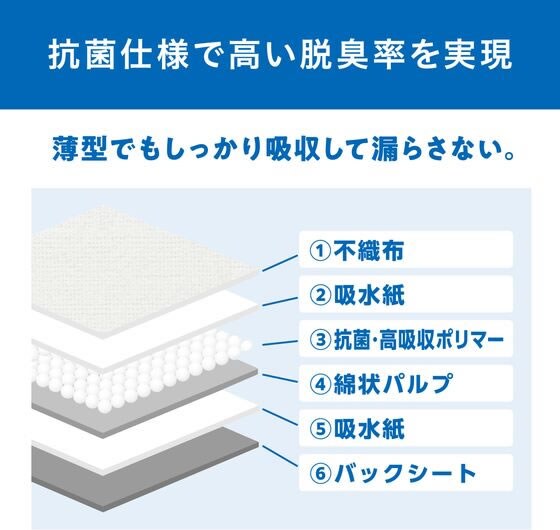 吸水力が高くおしっこの広がりや臭いを抑える使い捨てタイプの薄型防水シーツです。