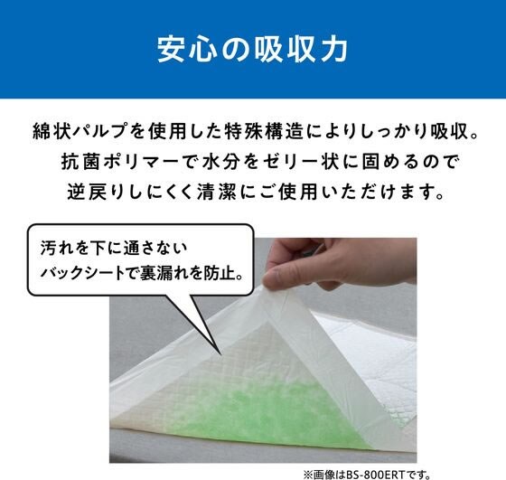 吸水力が高く、おしっこの広がりや逆戻り、臭いを抑える防水シーツです。大容量&使い捨てタイプで気軽にお使いいただけます。綿状パルプを使用した特殊構造により十分な吸収力を持たせました。汚れを下に通さないバックシートで裏モレを防止。使用後は包むようにして捨てられるので、後始末が簡単です。抗菌・高吸収ポリマーで水分をゼリー状に固めるので、逆戻りしにくくいつでもサラサラ。