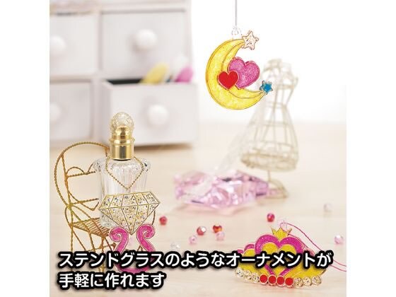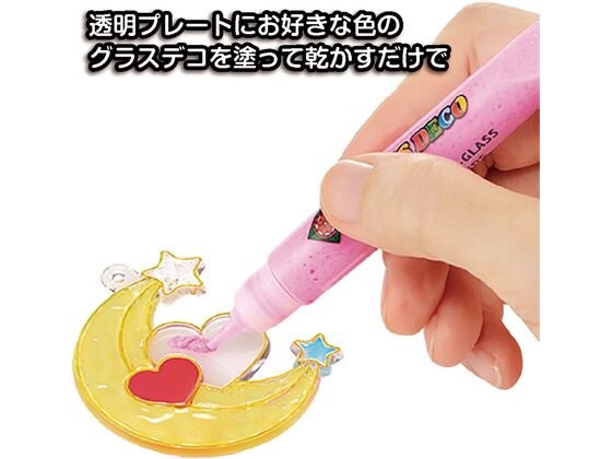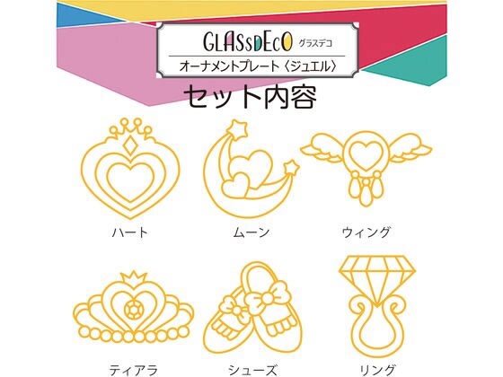 グラスデコオーナメントセットが、プレートのみのパックになって新登場。別売りのグラスデコで、高さ約1ミリの縁取り付オーナメントプレートを塗るだけで簡単に作品が完成。従来のグラスデコより一層手軽に楽しめる。ボールチェーンやひもなどをつけ、部屋の飾りにしたり、アクセサリーのように楽しむことができる。絵柄はハート、ムーン、ウィング、ティアラ、リング、シューズの6種類。