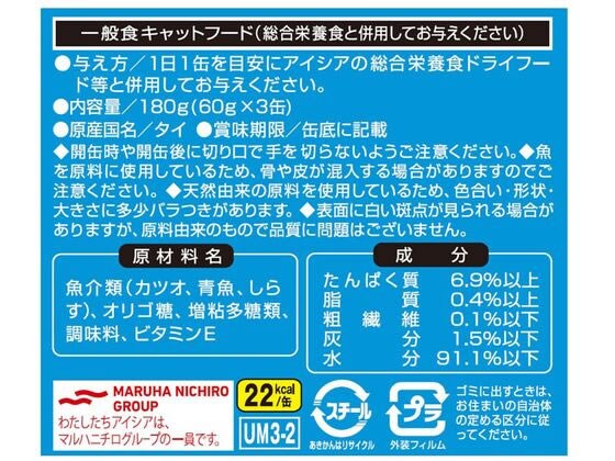 【お取り寄せ】 アイシア 海缶 ミニ3P しらす入りかつお ゼリータイプ 180g アイシア ウェットフード 猫 ペット キャットフード