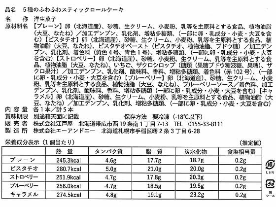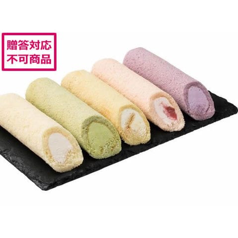 ●内容量:ロールケーキ(プレーン・キャラメル・ピスタチオ・ストロベリー・ブルーベリー各1本)