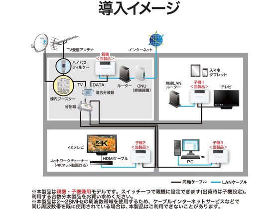 テレビ同軸線でIPネットワークを構築できる通信モデム。
