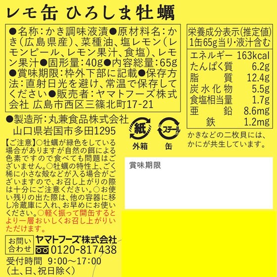 ヤマトフーズ レモ缶ひろしま牡蠣の塩レモンオイル漬け 65g×24缶 缶詰 魚介類 食材 食品