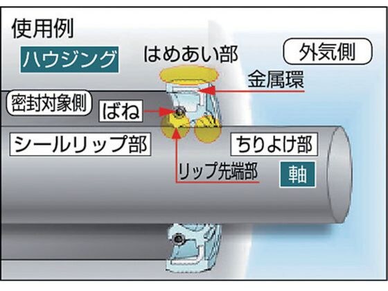 ●回転軸用のシールとして使用され、外部よりの異物を防ぐ必要のある場合に使用されます。