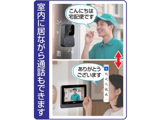 ●声だけのインターホンや音だけのチャイムと違い、ピンポーンと鳴れば室内のモニターに来訪者が映り、画面を見ながら会話もできて安心。さらにビデオ録画機能付きで表情・声まで自動録画できます