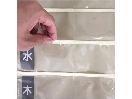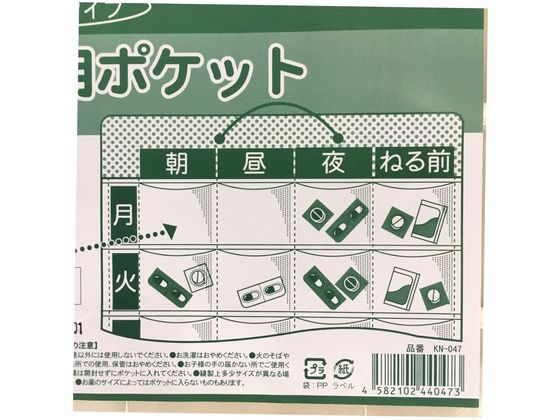1週間分のお薬をあさ・ひる・よる・ねる前ごとに分けて収納できる壁掛けカレンダー型ポケットです。
