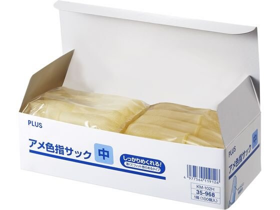 【お取り寄せ】 プラス アメ色指サック 中 100個入 KM-102H 35-968 指サック サックタイプ 紙めくり デスク周り 文具