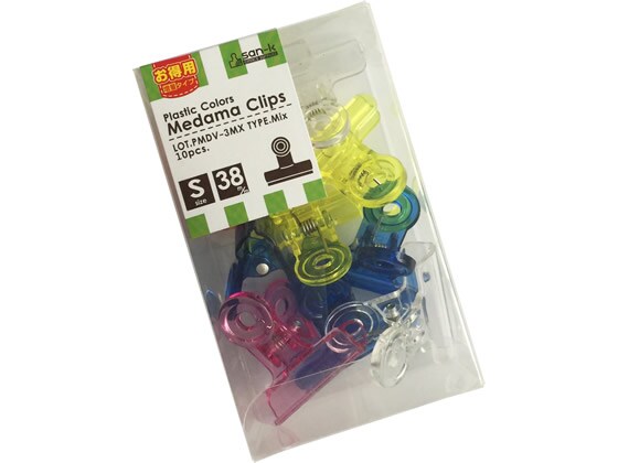 サンケーキコム プラカラー目玉クリップ色込 小 38mm 10個 PMDV-3MX 目玉クリップ 留める 文具 事務
