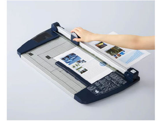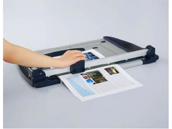 スライダーを前後にスライドするだけで、簡単に裁断ができるロータリー式ペーパーカッター。
