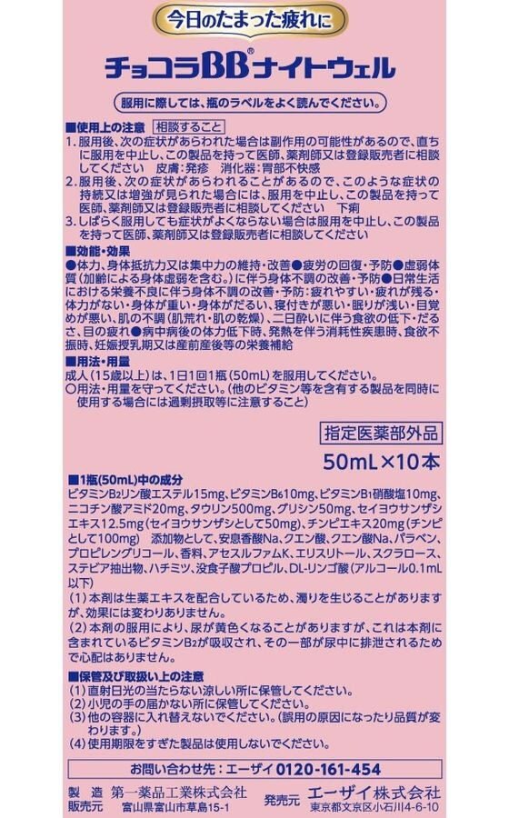 【お取り寄せ】 エーザイ チョコラBBナイトウェル 50mL×50本 栄養ドリンク エナジードリンク 栄養補助食品 健康食品のレビュー