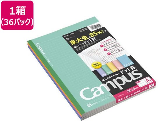 送料無料 コクヨ キャンパスノート セミB5 A罫ドット入り 5冊×36セット ノ-3CATX5 東大生コラボノート