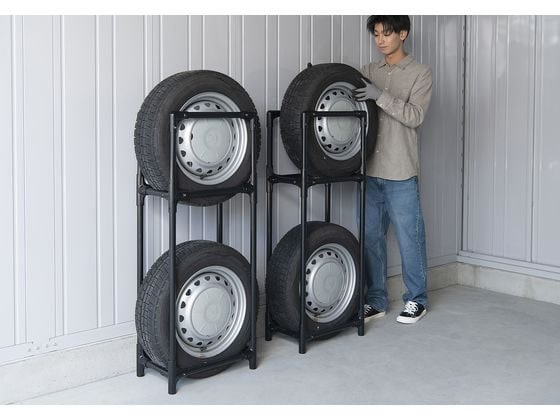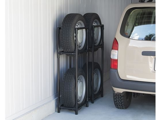 普通乗用車やSUV用のタイヤを収納できます。スリムタイプのため、車庫やベランダスペースを活用してタイヤを収納できます。お客様組み立てとなります。