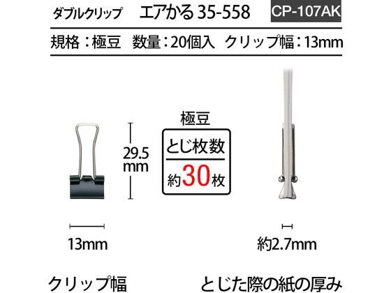 プラス 軽く開けるクリップ エアかる 極豆 20個 CP-107AK ダブルクリップ 留める 文具 事務