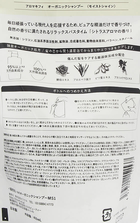 ビジナル アロマキフィ オーガニック モイストシャイン シャンプー 詰替 400mL リンスイン シャンプー リンス ヘアケア