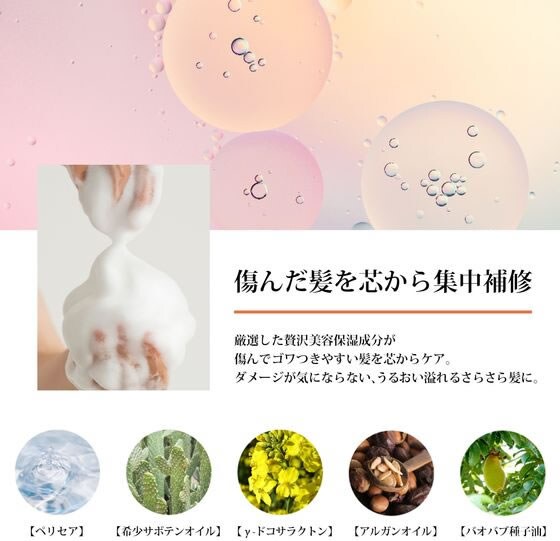 ダメージケアのボタニカル成分に加え、理想的な頭皮環境に整える抗酸化成分として国産のバラ酵母エキスを世界で初めて配合し、ピュアな天然精油のみで香りづけしています。