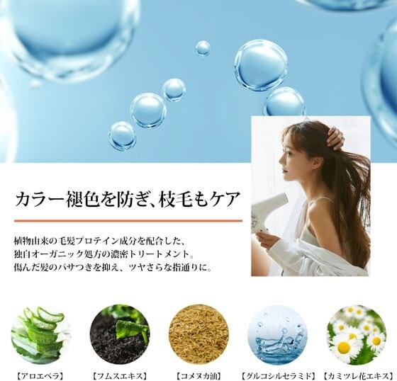 95%以上を天然由来成分で構成した、家族で使えるオーガニックヘアケアのトライアルパウチ。