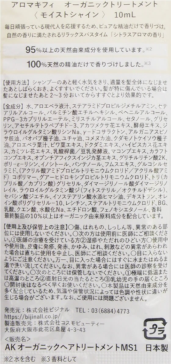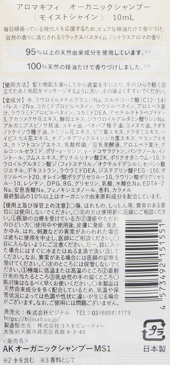 ビジナル アロマキフィ オーガニック モイストシャイン シャンプー&トリートメントトライアル リンスイン シャンプー リンス ヘアケア