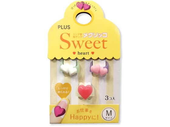 プラス メクリッコSweet ハート2 Mサイズ 3個入 KM-302SA-3 35-904 指サック リングタイプ 紙めくり デスク周り 文具