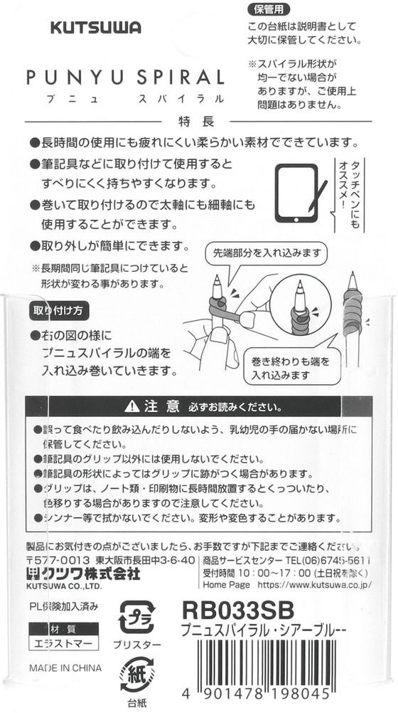 クツワ プニュスパイラル シアーブルー 3個入 RB033SB 鉛筆グリップ 鉛筆関連商品 鉛筆 色鉛筆