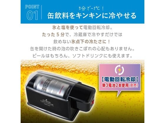 常温の缶をたったの5分で-1℃まで冷やす!(冷蔵庫だと数時間で約4~8℃)