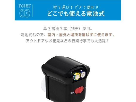 電池式なので、春夏秋冬・時・場所を選ばず使える。お花見、アウトドア、忘年会など。