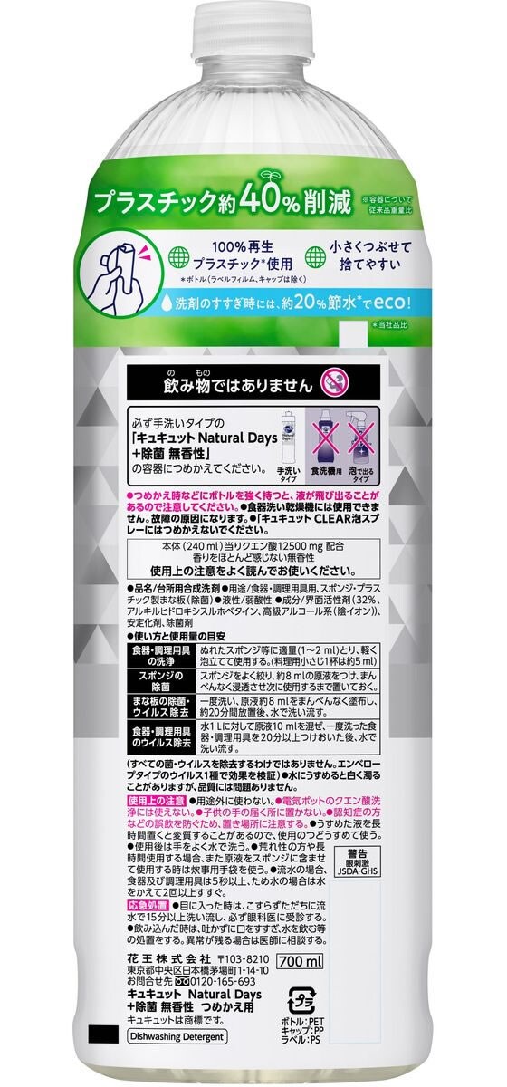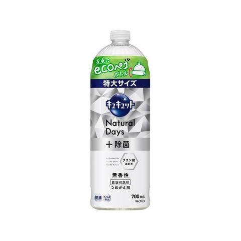 KAO キュキュット NaturalDays+除菌 無香性 詰替 700mL 食器洗用洗剤 キッチン 厨房用洗剤 洗剤 清掃