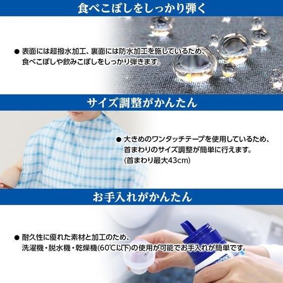 ●表面には撥水加工、裏面には防水加工を施しているため、食べこぼしや飲みこぼしをしっかり弾きます。