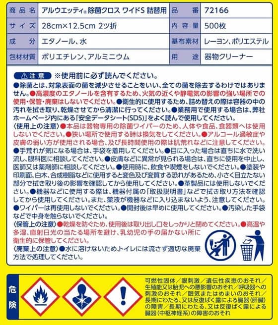 ●除菌に適した80%(76.9~81.4vol%)のエタノールを厚手の不織布に含浸させた、環境除菌ワイパーです。