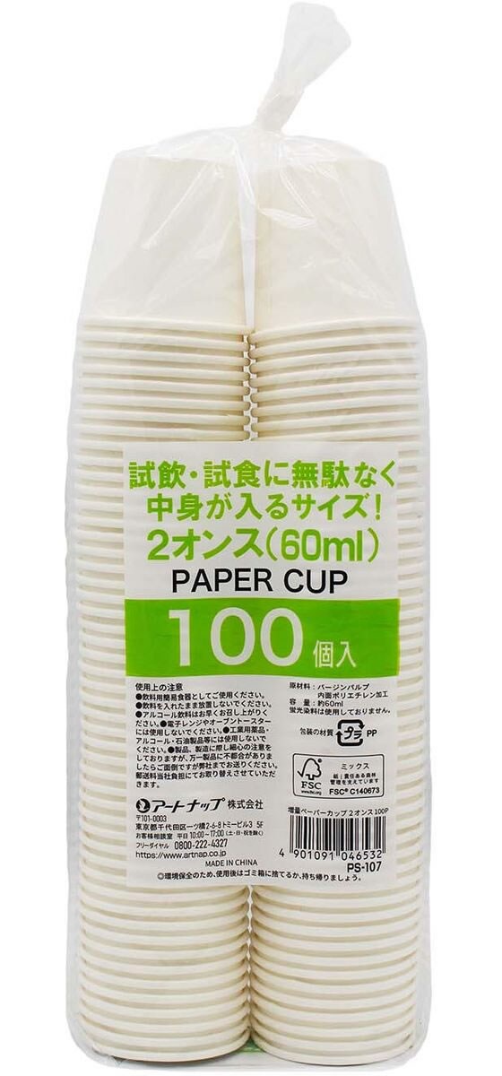 アートナップ ペーパーカップ 白無地 2オンス 100個 PS-107F