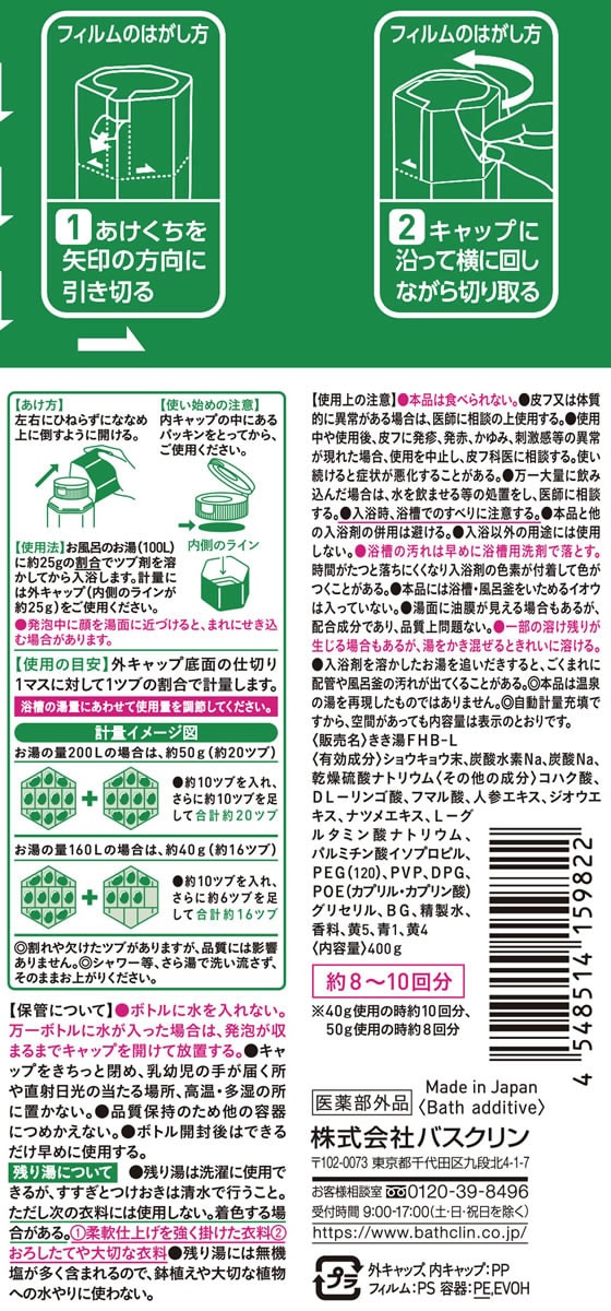 バスクリン きき湯 ファインヒート ディープリフレッシュ 400g