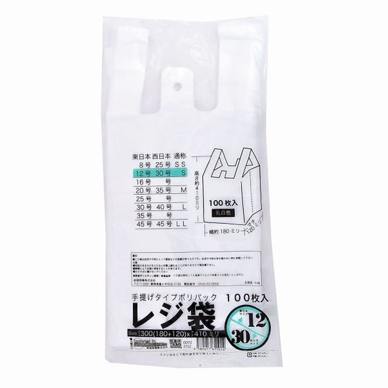 紺屋商事 レジ袋乳白東12西30号 100枚 00722112
