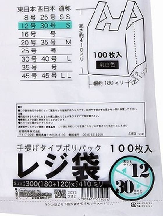 毎日のショッピングに最適な乳白色レジ袋。東日本「12号」、西日本「30号」サイズで、500mlペットボトル2本がピッタリ入ります。持ち手部分が幅広なので、重いものを入れても持ちやすく、手が疲れにくい設計です。厚手乳白色素材が中身を見えにくくし、プライバシー対策にも安心。100枚入りでコストパフォーマンス抜群。普段の買い物やゴミ袋、小物収納、アウトドアにもおすすめです。