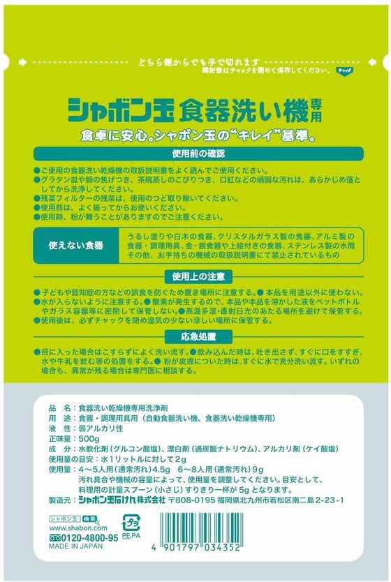 シャボン玉販売 シャボン玉食器洗い機専用 500g 食器洗浄機用洗剤 キッチン 厨房用洗剤 洗剤 清掃