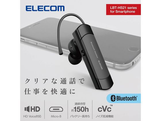 【お取り寄せ】 エレコム 片耳ヘッドセット Bluetooth接続 ブラック LBT-HS21MPBK2 ヘッドセット 通話用イヤホン PC周辺機器 パソコン 家電
