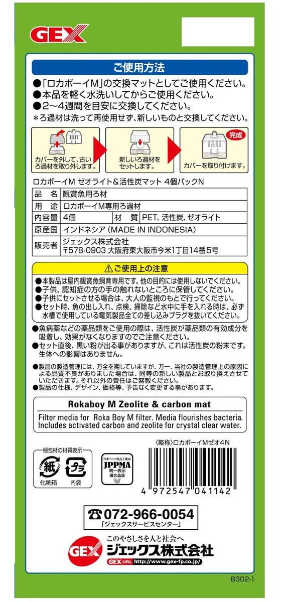 ジェックス ロカボーイ M ゼオライト活性炭マットN 4個