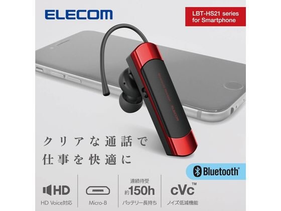 【お取り寄せ】 エレコム 片耳ヘッドセット Bluetooth接続 レッド LBT-HS21MPRD2 ヘッドセット 通話用イヤホン PC周辺機器 パソコン 家電