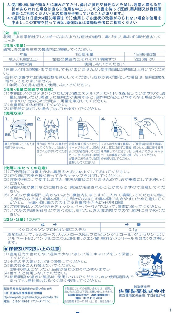 ●ベクロメタゾンプロピオン酸エステルの働きにより鼻腔内のうっ血や炎症を抑え、鼻の通りをよくします。