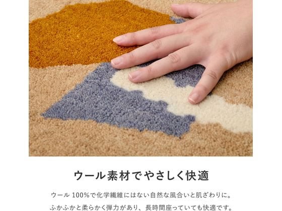 幾何学模様やニュアンスカラーを組み合わせたデザインは、ナチュラルインテリアや北欧インテリアとも相性抜群です。素材には保温性・吸湿性に優れたウールを使用しており、季節を問わず快適な座り心地。コンパクトなサイズ感で扱いやすく、模様替えや気分転換にもぴったり。日々の暮らしに取り入れやすい、デザイン性と機能性を兼ね備えたチェアパッドです。