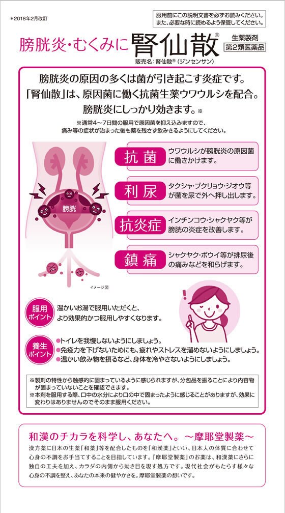 「腎仙散」は、原因菌に働く抗菌生薬ウワウルシを配合。