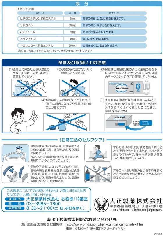 大正製薬 たいしょう タイショウ taisho プリザS坐剤T プリザ坐剤 プリザS ぷりざS 痔の薬 痔疾用薬 痔疾用外用薬 ぢの薬 坐剤 坐薬 座薬 小型タイプ 挿入 1箱 20個 指定二類医薬品 きれ痔 さけ痔 いぼ痔 痛み 出血 はれ かゆみ 緩和 切痔 切れ痔 裂け痔 イボ痔 腫れ 痒み ヒドロコルチゾン酢酸エステル リドカイン メントール配合