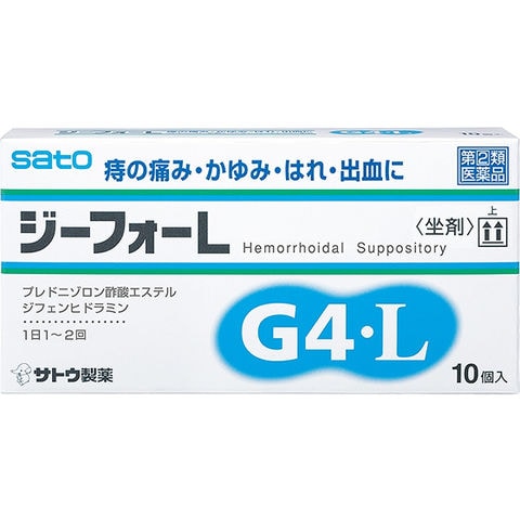 佐藤製薬 さとう サトウ Sato じーふぉーL G4L 痔の薬 痔疾患用薬 ぢ 肛門用薬 外用痔疾用薬 坐剤 座剤 座薬 坐薬 白色 1箱 10個 指定二類医薬品 お薬 おくすり ドラッグ 成人 15才以上 肛門内 切れ痔