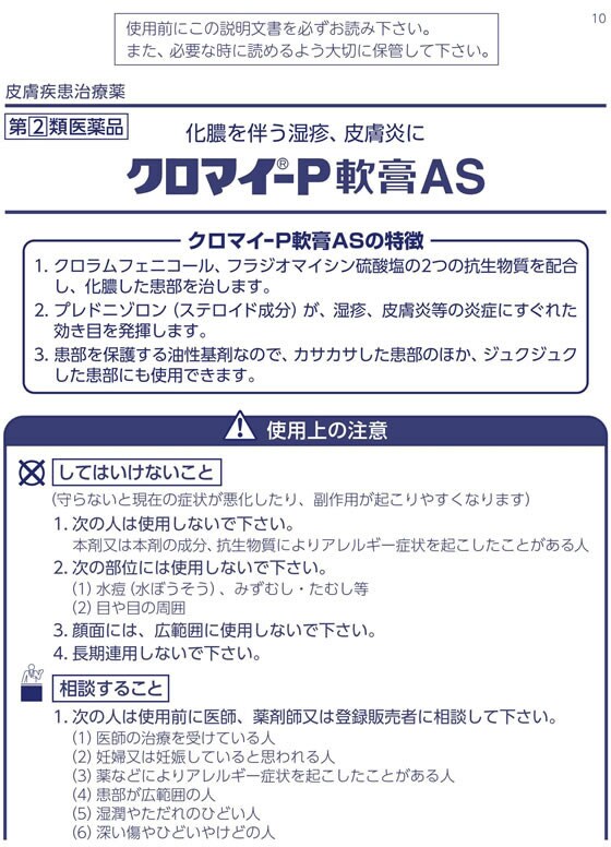 第一三共ヘルスケア だいいちさんきょうへるすけあ クロマイP軟膏AS クロマイ軟膏 くろまい クロマイpナンコウas 化膿性疾患用薬 皮ふ薬 皮膚薬 皮膚疾患治療薬 化膿止め 外用薬 抗生物質 ステロイド剤 軟膏 塗り薬 指定二類医薬品 化膿 湿疹 皮膚炎 あせも かぶれ しもやけ 虫さされ じんましん 化膿性皮膚疾患 とびひ めんちょう 毛のう炎 しっしん 皮ふ炎 汗疹 虫刺され 蕁麻疹 面疔 毛嚢炎 クロラムフェニコール フラジオマイシン硫酸塩 プレドニゾロン 抗生剤 ステロイド成分
