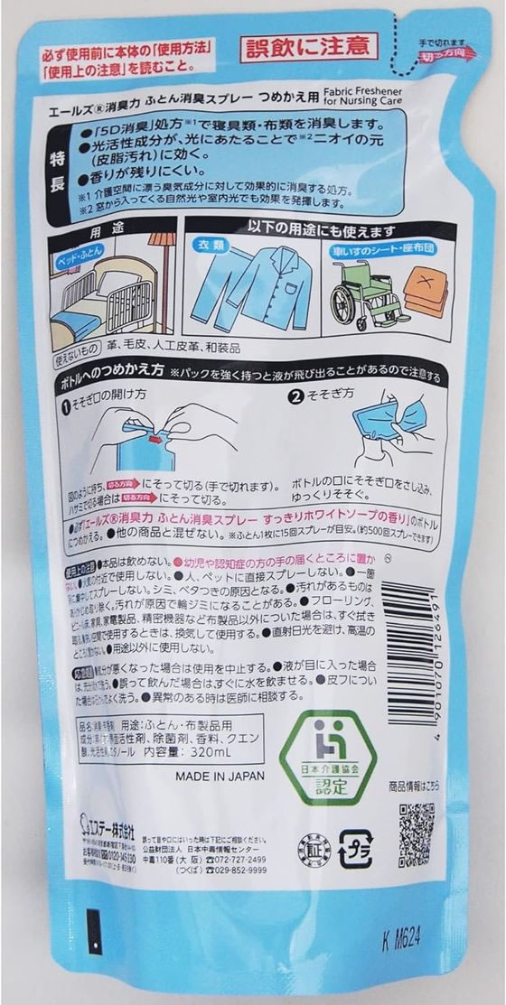 エステー エールズ介護家庭用消臭力ふとん消臭スプレー詰替320mL 介護 介助