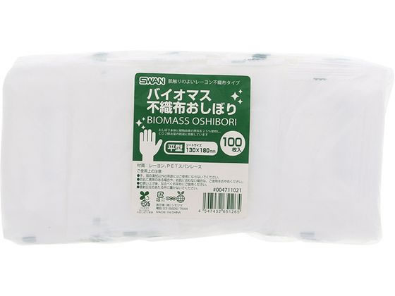 【お取り寄せ】 スワン バイオ不織布おしぼり 平型 白無地 100枚 004711021 おしぼり 紙ナプキン 使いきり食器 キッチン テーブル