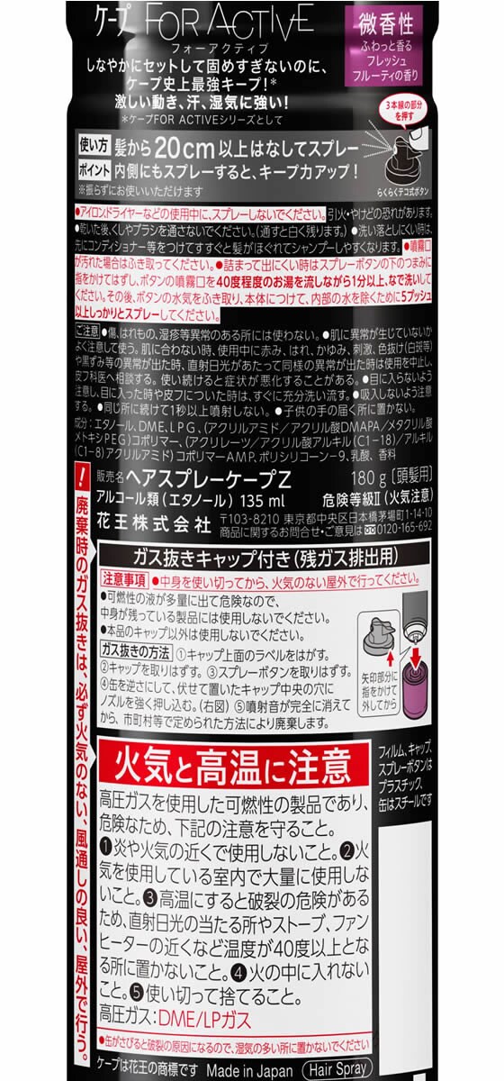 KAO ケープ FOR ACTIVE 微香性 180g ヘアスプレー スタイリング ヘアケア