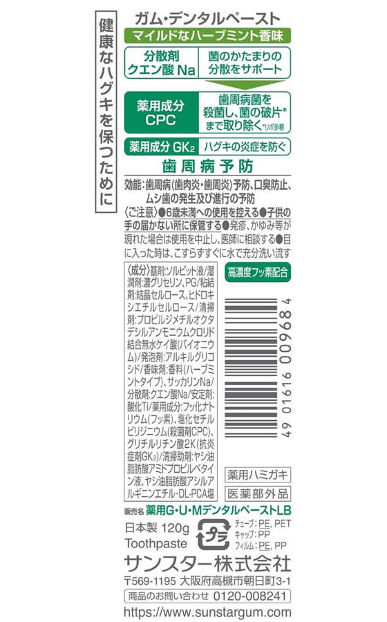 サンスター ガム デンタルペースト 120g タテ型 はみがき オーラルケア