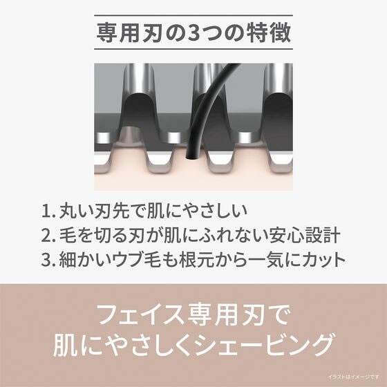 ・丸い刃先で肌にやさしい、約0.12mmのうす刃。水なしですっきり剃れる。・肌の凸凹に合わせて動く、密着スイングヘッド。・充電式電池が使え、経済的&エコ。
