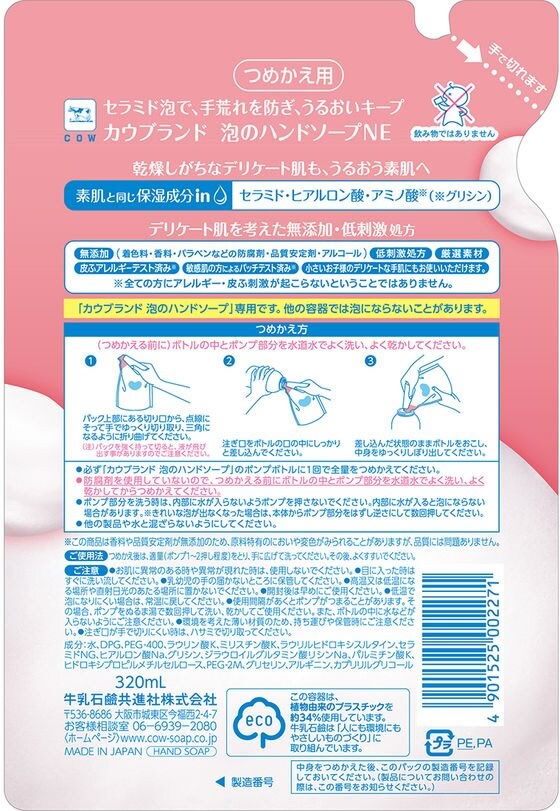 【メーカー直送】牛乳石鹸 カウブランド 無添加 泡のハンドソープ 替 320mL 24コ