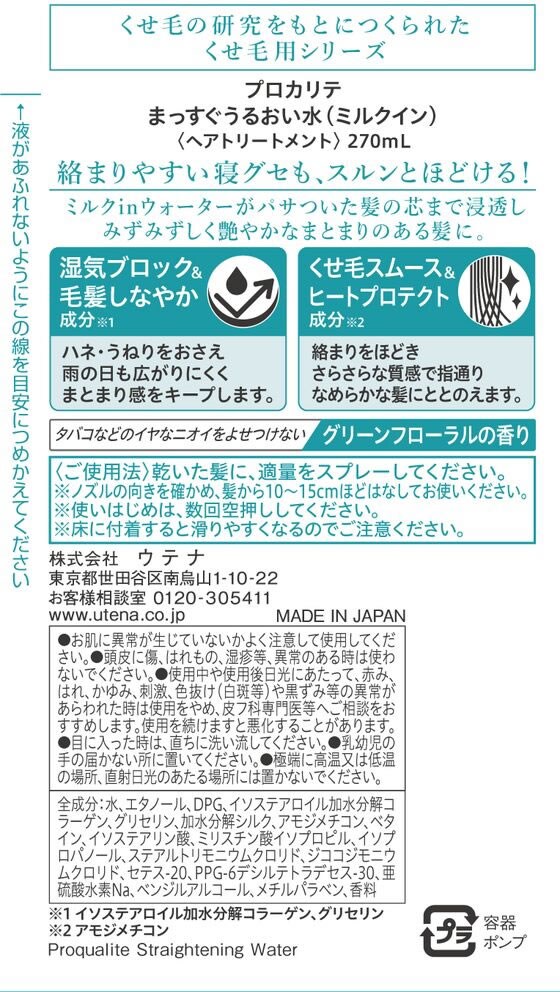 ウテナ プロカリテ まっすぐうるおい水 270mL ヘアウォーター ミスト スタイリング ヘアケア